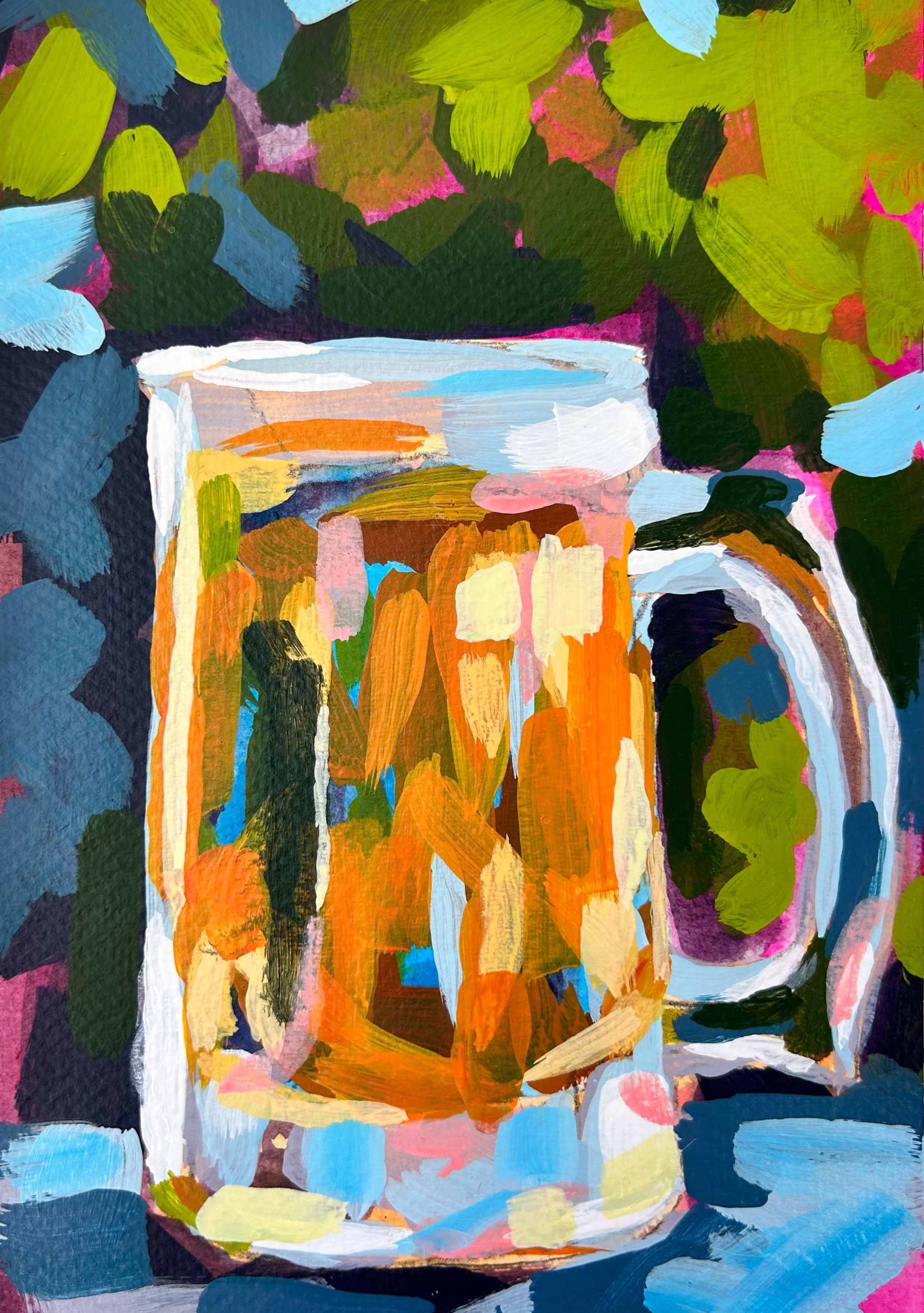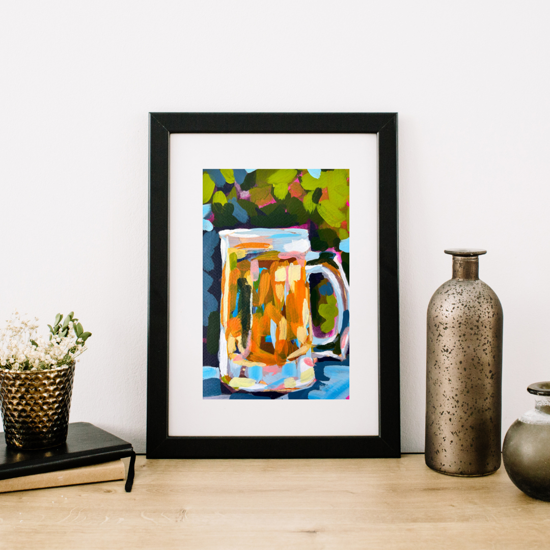 Bold strokes of color to capture light and life. This art print is created from my original painting and is printed on 32lb matte paper. This print arrives in a white mat and is unframed - frame not included. Inspired from a drink series with Ali Kay Studios.