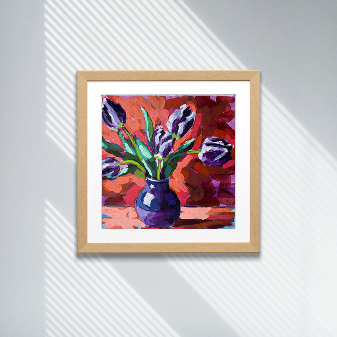 Warm your home with visions of summer. Bold strokes of color to capture light and life. This art print is created from my original painting and is printed on 32lb matte paper. This print arrives in a white mat and is unframed - frame not included.
